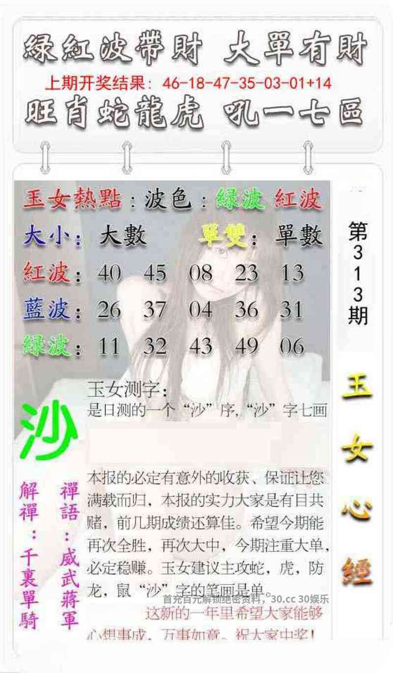 311期澳门彩票中心开蛇37 波色:绿波蓝波 头数:234头 尾数:8463729尾 生肖:蛇龙马猪兔羊鸡狗猴 平特:蛇蛇蛇 主码:37,49,26,38,24,36 防码:31,39,35,33,44,34 |